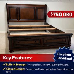 Title: Solid Wood King Sleigh Bed with 2-Drawer Storage – $750 OBO$750Johns Creek, GA
