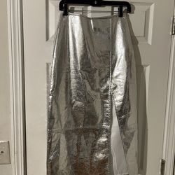 NASTY GAL Silver Metallic Pencil Faux Leather Slit Skirt size 4$40Atlanta, GA