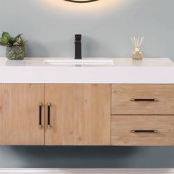 Altair Corchia 48" Light Brown Wall-Mounted Single Bathroom Vanity Set With White Composite Stone Top, Single Rectangular Undermount Ceramic Sink, and$650Atlanta, GA