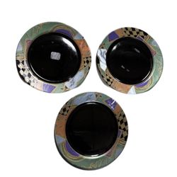 3 Arcoroc France Tampico Black Glass Chop Plate platter Geometric Design 12-3/8"$65Snellville, GA