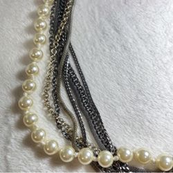 Elegant Vintage Style Multi Strand Layered Chunky Chains & Faux Pearl Necklace$20Johns Creek, GA