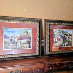 Set of Two Framed, Matted Landscape Prints, Depicting European Village Scenes. $40Lawrenceville, GA