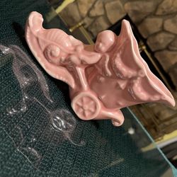 Art Pottery Vase Cherub Driving Snail Chariot Planter Pink Ceramic Vintage$15Woodstock, GA
