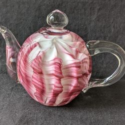 Art Glass Teapot Paperweight w/ Pink & White Swirls$30Alpharetta, GA