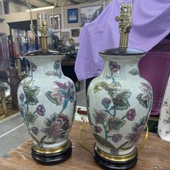 Frederick Cooper Chinoiserie Asian Floral Porcelain Table Lamps Wood Base Pair$350Snellville, GA