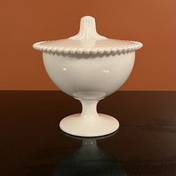Vtg Milk Glass Covered Pedestal Candy Bowl with Beaded Rim 7159 INDIANA 6 1/2"T$12Woodstock, GA