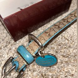 COACH BLUE LEATHER BROWN JACQUARD SIGNATURE C DOG PET COLLAR 4003$50Austell, GA