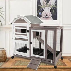 Pet07-Greywhite】PetsCosset Rabbit Hutch - 2 Story Rabbit Cage on Wheels Indoor Bunny Hutch with Run Outdoor Guinea Pig Cage with Waterproof Asphalt Ro$130Lawrenceville, GA