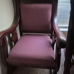 Antique Victorian-style rocking chair, likely made of mahogany W/ fabric upholstery. $75Lawrenceville, GA