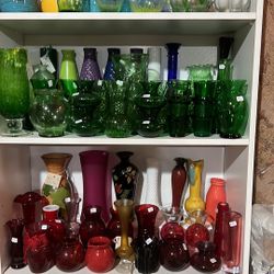 Antique- Northwood Feather Vase in Green Glass with Marigold Iridescence- $45Stockbridge, GA