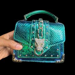 Aldo Mini Crossbody Bag, Metallic Green, Rhinestone Embellished Lion Closure$50Atlanta, GA