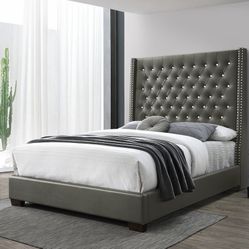 Brand New Grey/Black Upholstered Tufted King And Queen Size Bed Frame | Pay After Delivery $375Atlanta, GA