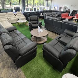Black Recliner Couch, Loveseat and Chair 3Pcs Set / Juego de sofá reclinable negro, Loveseat y silla$1,099Duluth, GA