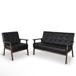 Mid-Century Vintage Modern Living Room Sofa Set with Loveseat and Seat Sofa Chair, Sofa and Lounge Chair, Leather Black$235Duluth, GA