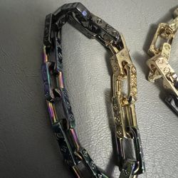2pcs Stainless Steel 18 k gold plated Golden Rhinestones Necklace & Bracelet, Hip Hop$60Lawrenceville, GA