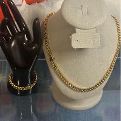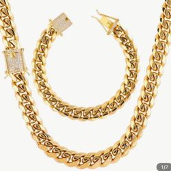 10mm Golden Plated Stainless Steel Miami Cuban Link Chain Set for Men Curb Bracelet 26 inches Chains8.5 inches bracelet $60Lawrenceville, GA