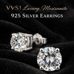 VVS1 8mm 4 carat Earrings Made With 925 Silver Diamond Tester VERIFIED $100Grayson, GA