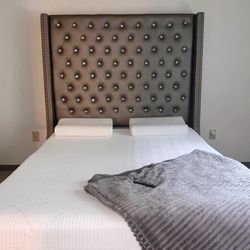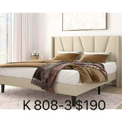 King Size Upholstered Platform Bed Frame with Wingback & Geometric Headboard, Light Beige(808-3)$190Duluth, GA
