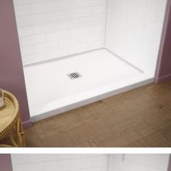 ShowerCast 48 in. L x 34 in. W Alcove Shower Pan Base in White with Square Chrome Center Drain $99Snellville, GA