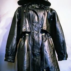 High Quality Black Leather Hooded Jacket Trench Coat$300Lawrenceville, GA