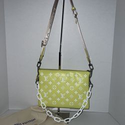 New Coussin PM Clutch Crossbody Handbag Highlighter Fluorescent Yellow White Chain Leather$170Atlanta, GA