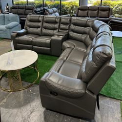 Grey Leather Recliner Sectional /Seccional reclinable de cuero gris$1,299Duluth, GA