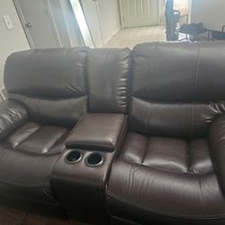 Brown & Cherry Leather Recliner Curve Sofa, Sofa + Loveseat + Chair$1,299Atlanta, GA