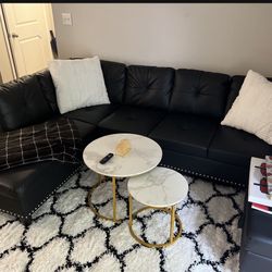 Black Leather Sectional And Ottoman No Pillows $350Kennesaw, GA
