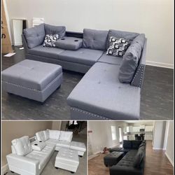 AVAILABLE IN BLACK, WHITE,& BROWN!! SECTIONAL WITH OTTOMAN $725 DELIVERY INCLUDED!! BRAND NEW DELIVERED IN BOXES !! The sectional is bonded leather $725Dunwoody, GA