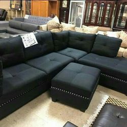 Black Linen-like Sectional & Storage Ottoman w/nailhead trim$699Atlanta, GA
