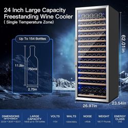 Wine Cooler 24 Inch, 154 Bottles Wine Refrigerator, Freestanding Wine Fridge with Intelligent Temperature Memory & Humidity Control Design Wine Cooler$980Buford, GA