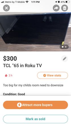 32" TCL Roku Smart Tv (for parts)$70Lawrenceville, GA