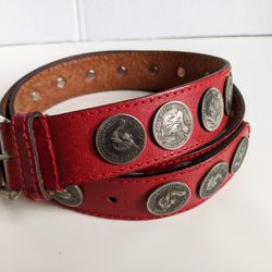 Saks Fifth Avenue Red Coin Embellished Leather Belt Italy Sz: S-M$68Alpharetta, GA