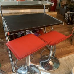 Beautiful Black And Orange Table With 3 Cow Print Stools And Shelving $150Conyers, GA