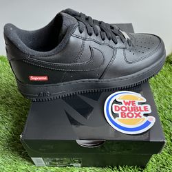 Nike Supreme Air Force 1 Low SP Size 9.5 Shoes Black Box Logo Sneakers 2023 Release Collaboration$200Norcross, GA