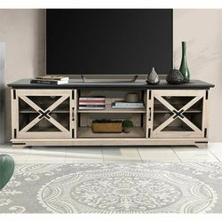 New in Box Living Essentials Denver X Door Wooden TV Stand in Taupe Oak