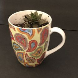 Paiseley Porcelain Mug With Hens And Chick Succulent 4” High$7Valdosta, GA