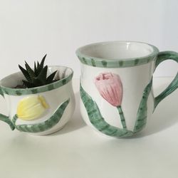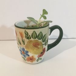Cappuccino Cup With Succulent And Matching Coffee Mug 4”/ 120z Used Hand Paintrd Porcelain Vietri Italian Mother’s Day!$8Valdosta, GA