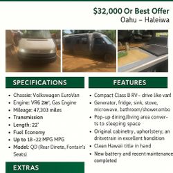 2000 VW winnebago Rialto $26,000Waialua, HI