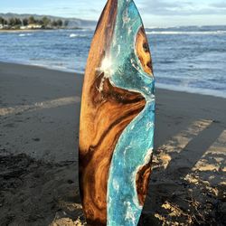 Surfboard art, 61 inch Monkeypod and Epoxy ocean$1,650Mililani, HI