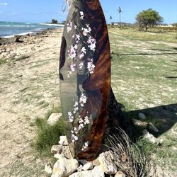 Surfboard Art, Hawaiian Monkeypod And Epoxy Cherry Blossoms 70 Inches$3,300Mililani, HI