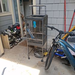 54” Tall Black Bird Cage - 30”x 24”x17” - Metal w/Rolling Stand - $70 obo$70Honolulu, HI
