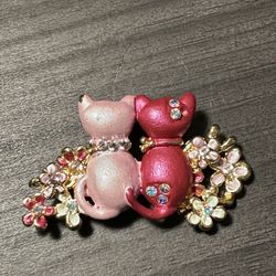 BETSEY JOHNSON PAIR OF KITTENS IN LOVE PETITE GOLD PIN SITTING IN FLOWERS$20Ewa Beach, HI