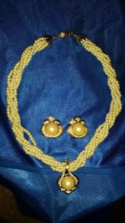 Pearl & Gold Accented Fashion Jewelry - Necklace and Matching Clip-on Earrings$10Ewa Beach, HI