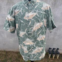 Preowned Reyn Spooner Classic Hawaiian Fishes Green Full Button Men's Large$55Waipahu, HI