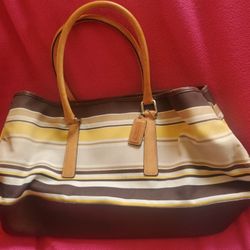 Auth Coach Striped TAN LEATHER Tote handbag Purse$45Waipahu, HI