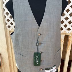 New Lauren Ralph Lauren Five Button Hitchcock Vest Light Gray Pocket Men's L$90Waipahu, HI