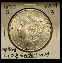 1897-S MORGAN SILVER DOLLAR **VAM 13**SPIKED LIP & GOUGES IN M BU+$185Honolulu, HI