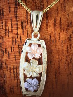 14 k tri color gold three plumeria vertical pendant$135Honolulu, HI