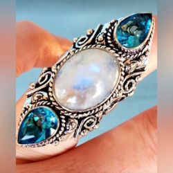 Silver Tone Ring With Opalescent And Blue Gems$18Geneva, IA